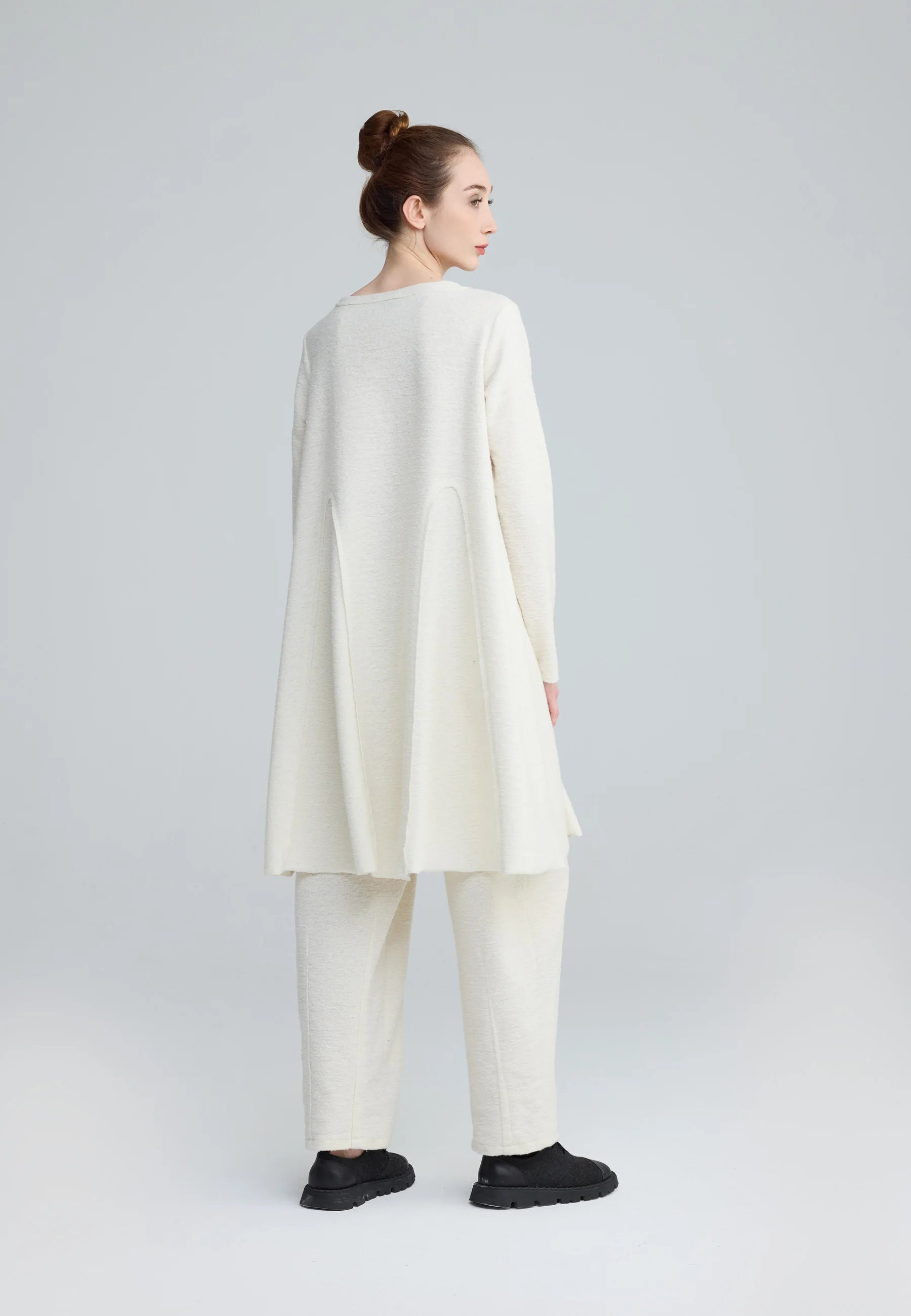 ✓ Its mid-length hem and long sleeves provide a comfortable and chic drape.