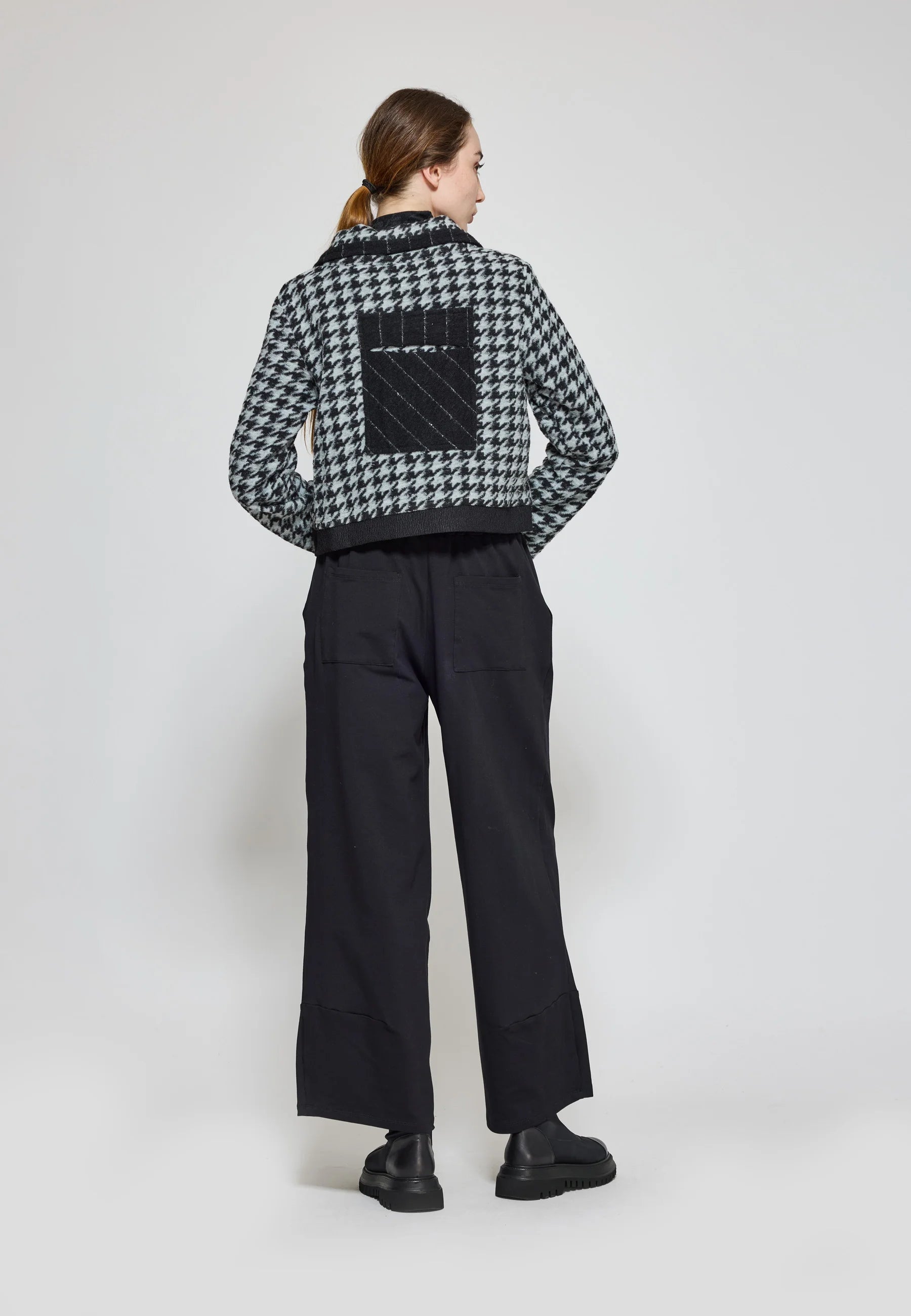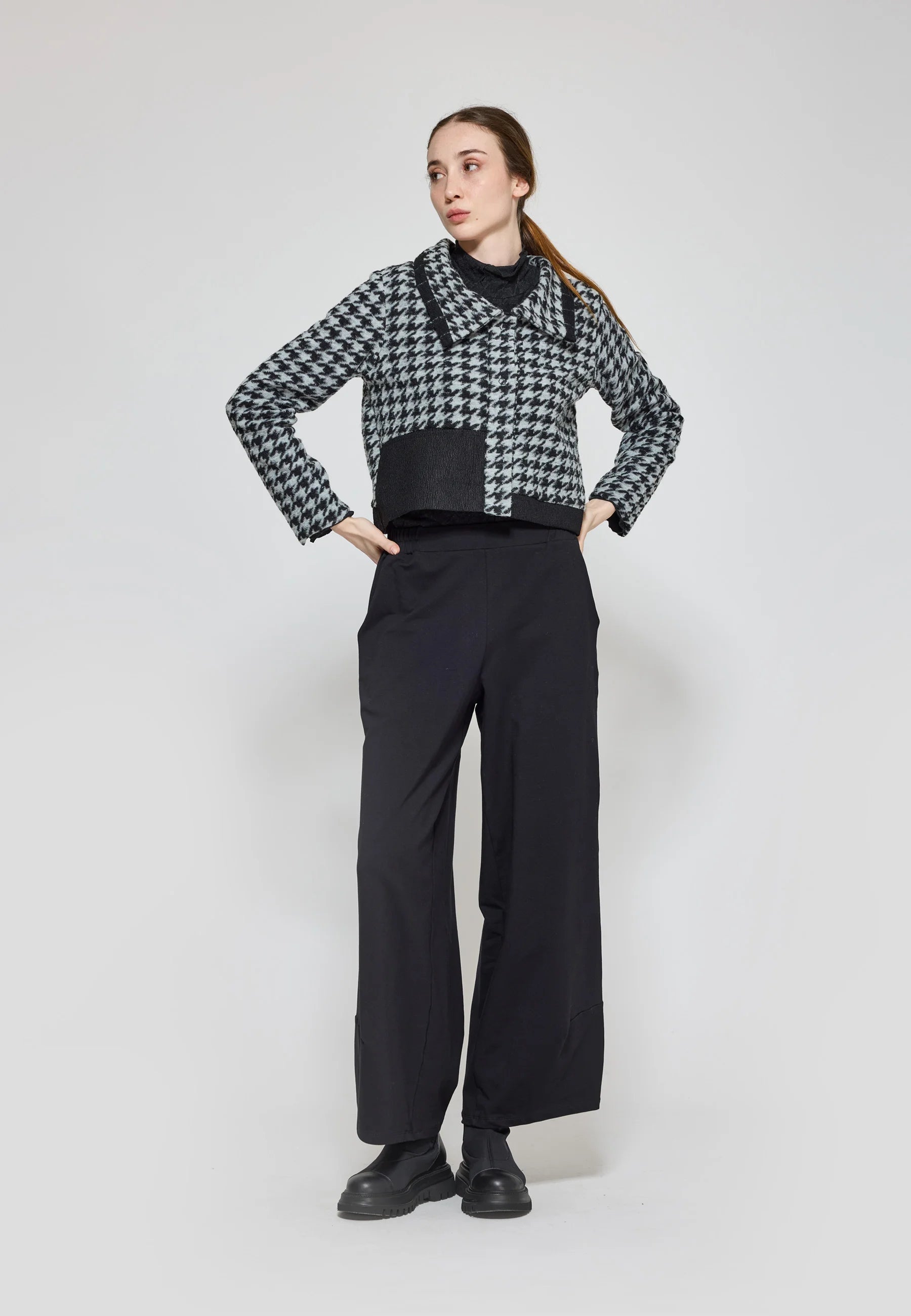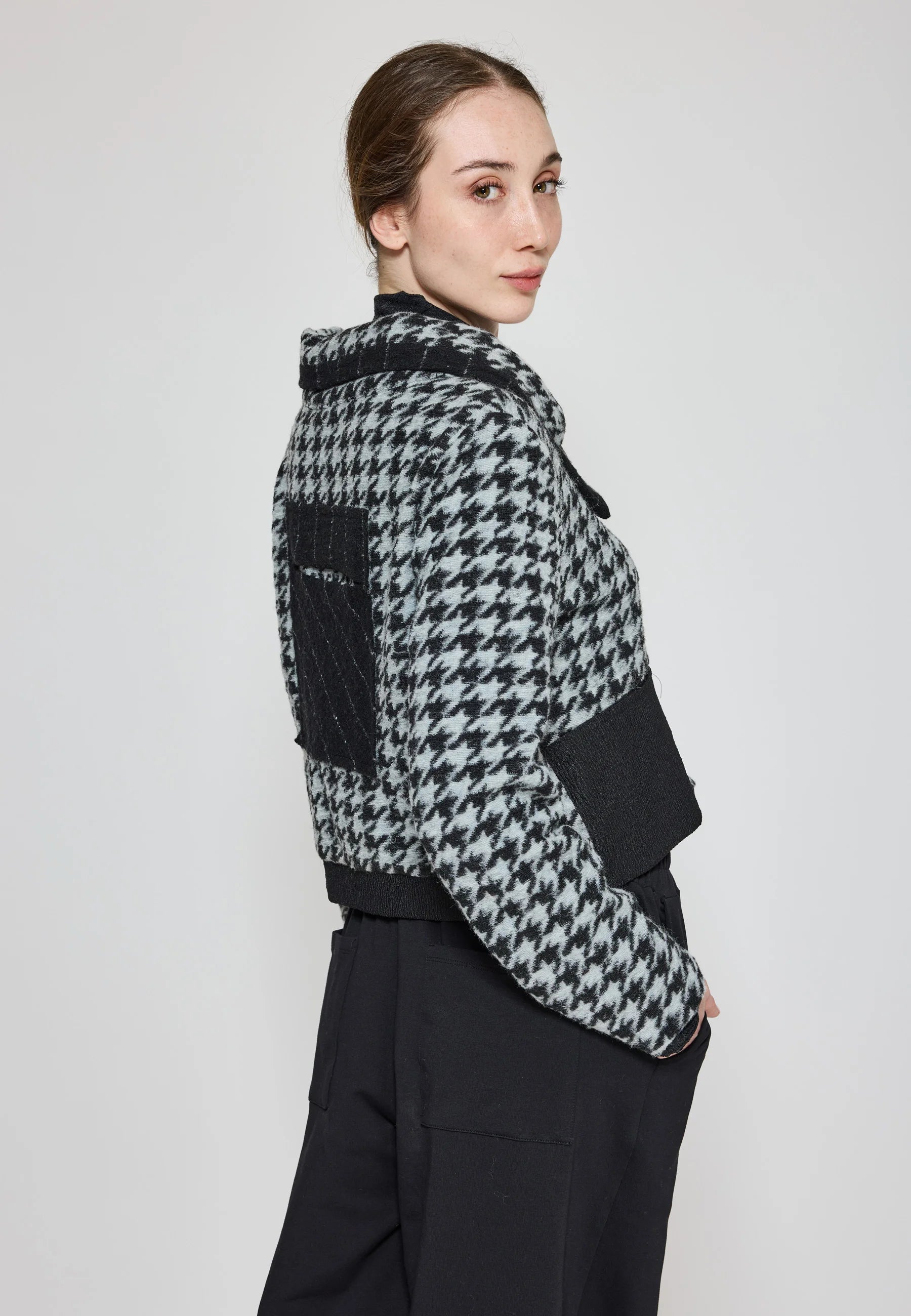 ✓ Crafted from a unique blend of houndstooth and striped wool-blended felt with textural crinkle taffeta accents, offering a dynamic, mixed-media feel.