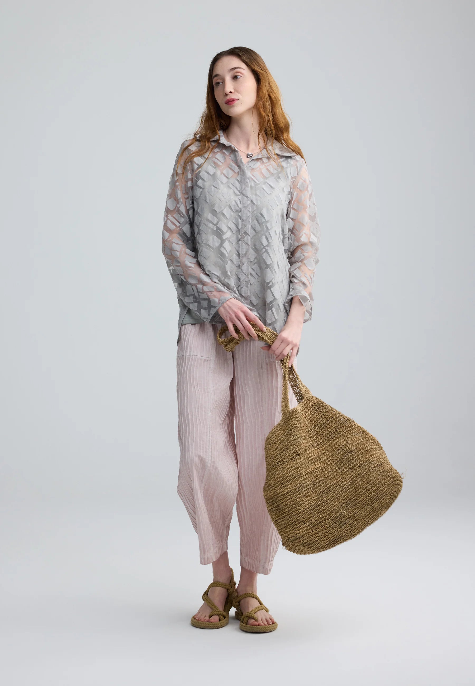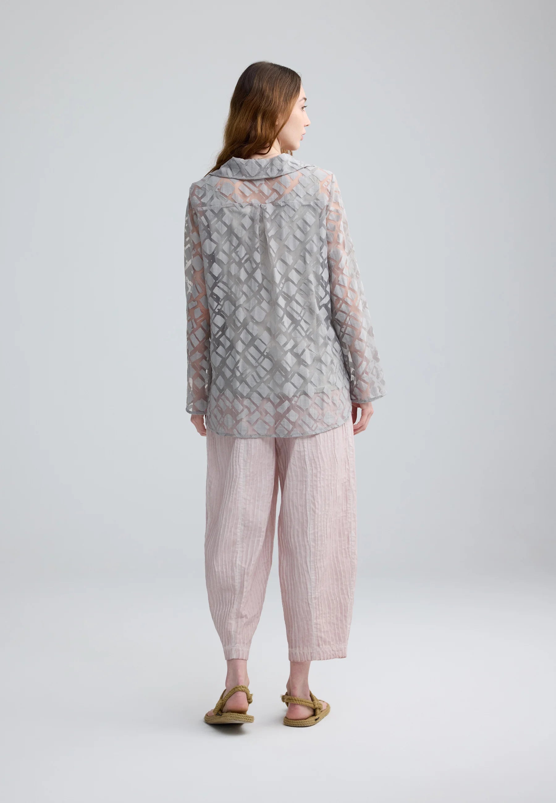 To achieve a sophisticated, monochromatic look, pair it with the matching LIORE Pants to balance the blouse's generous volume.