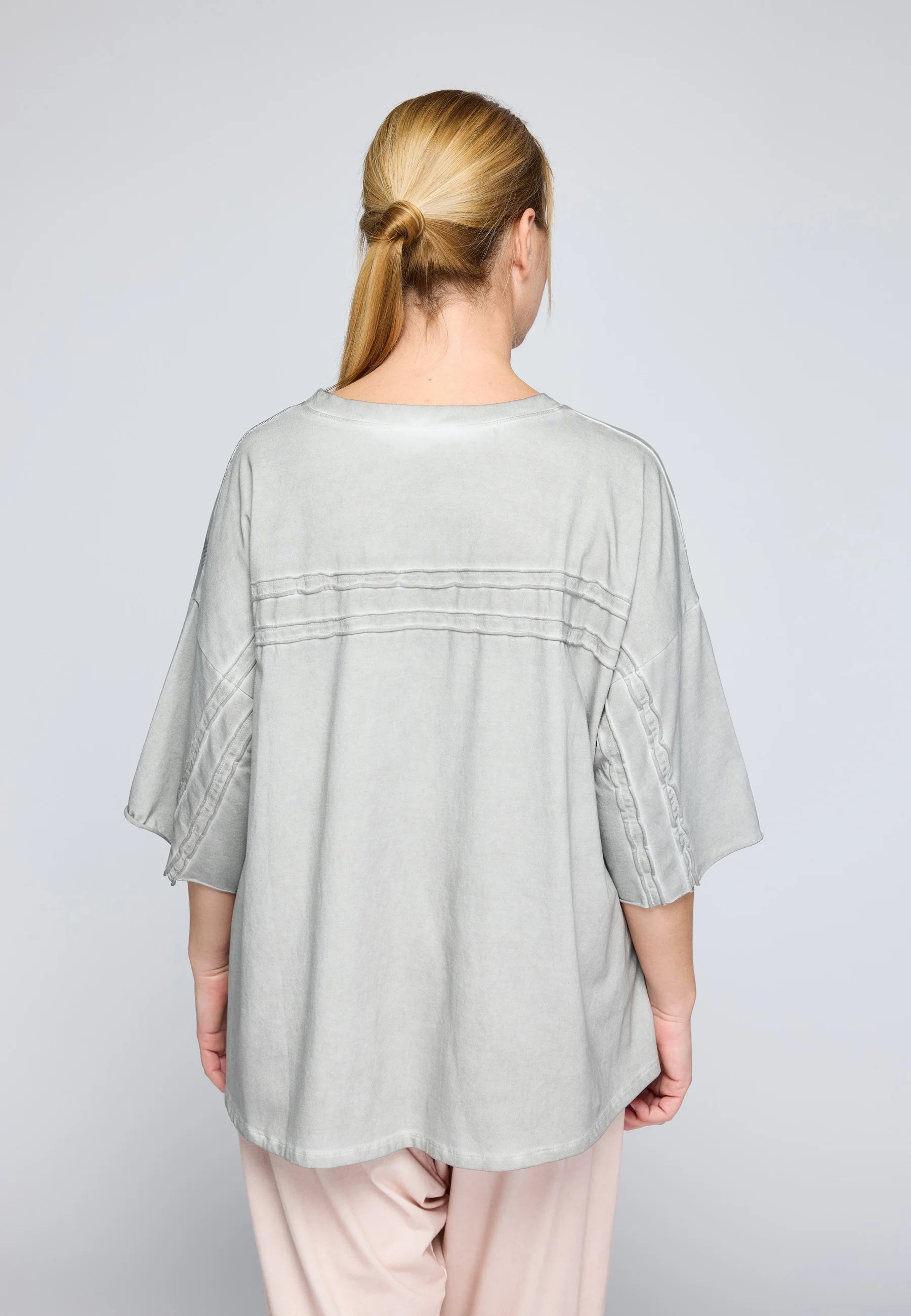The THALIA Top is a cornerstone of the collection, blending ultimate comfort with a unique textural character.