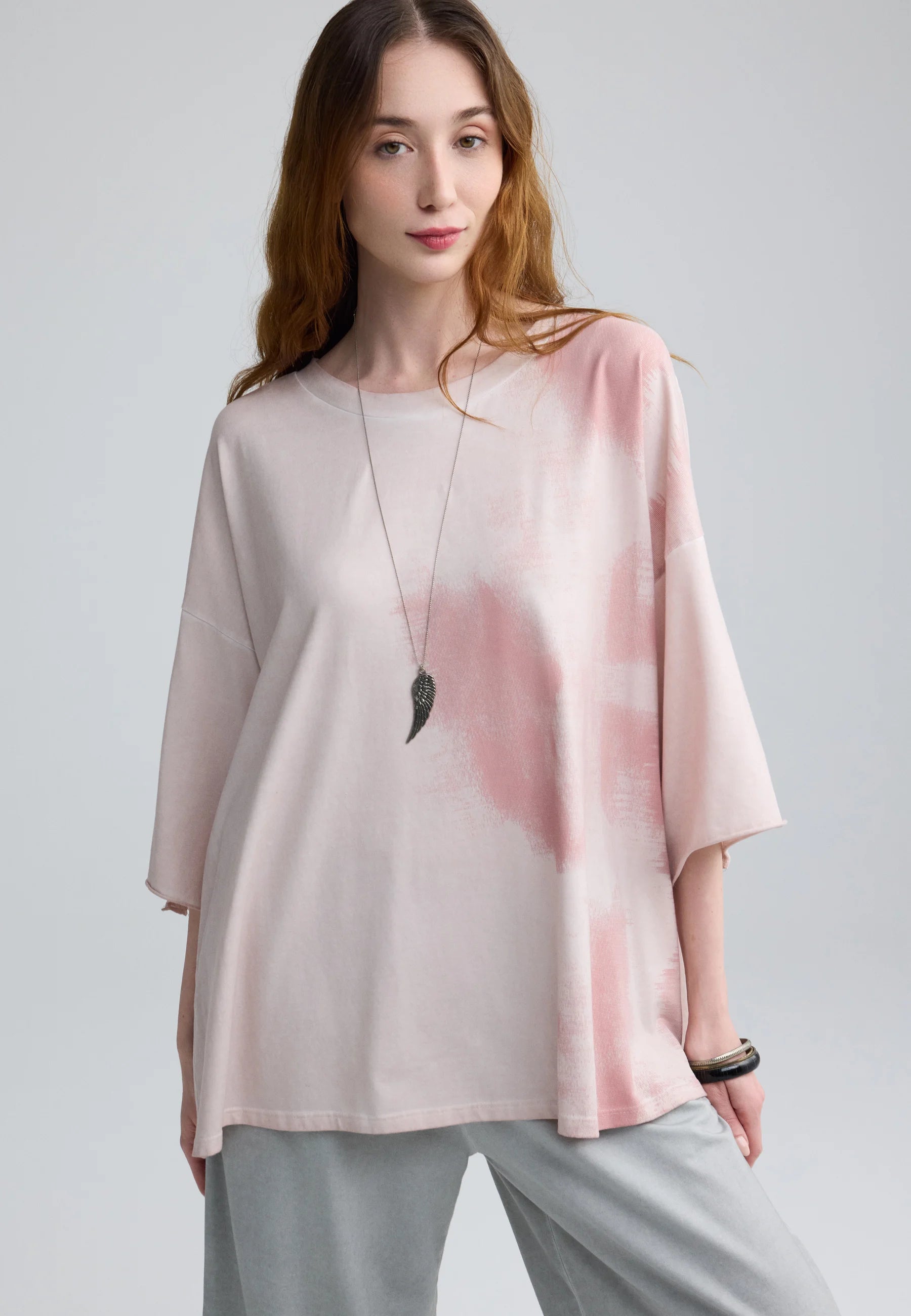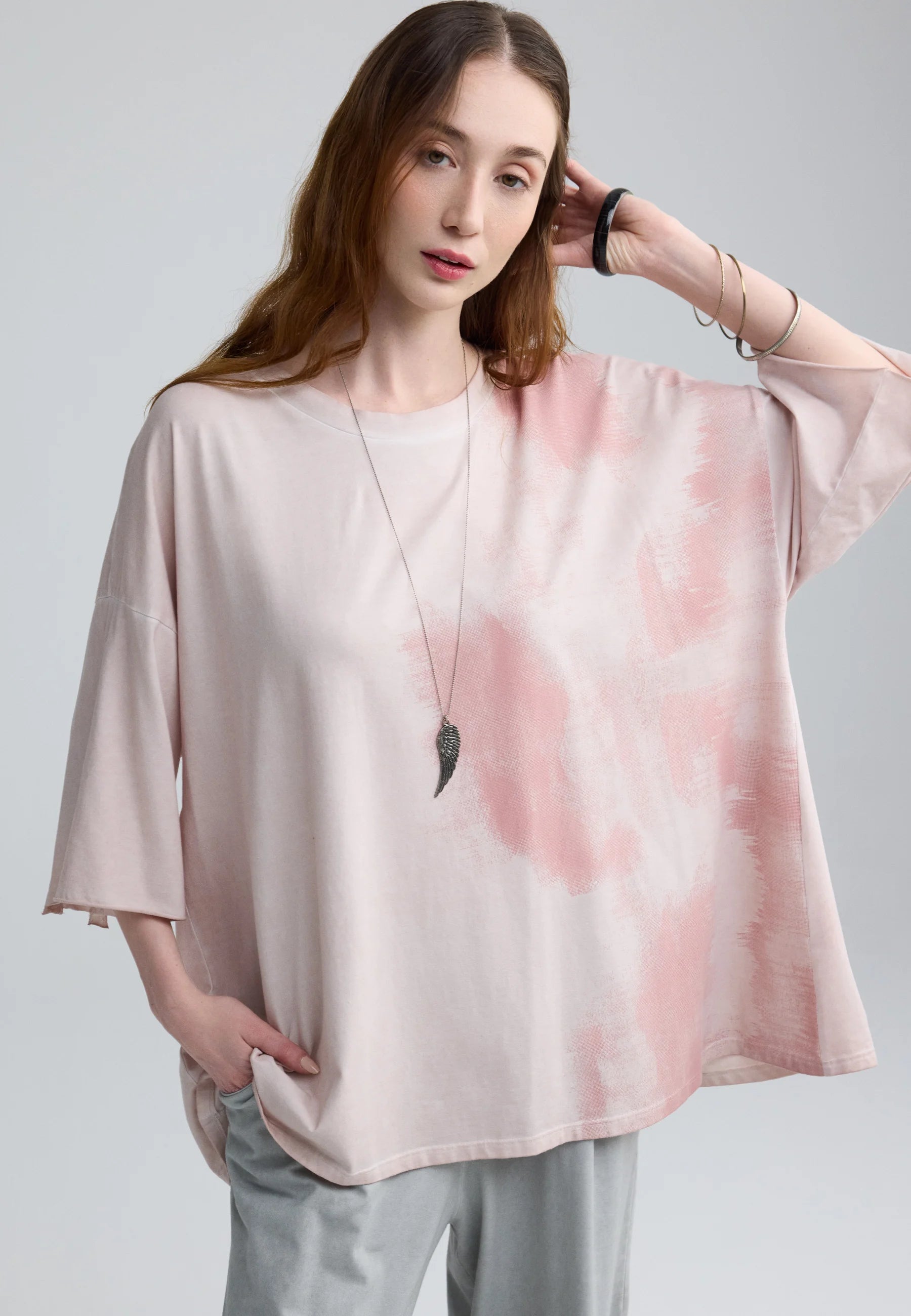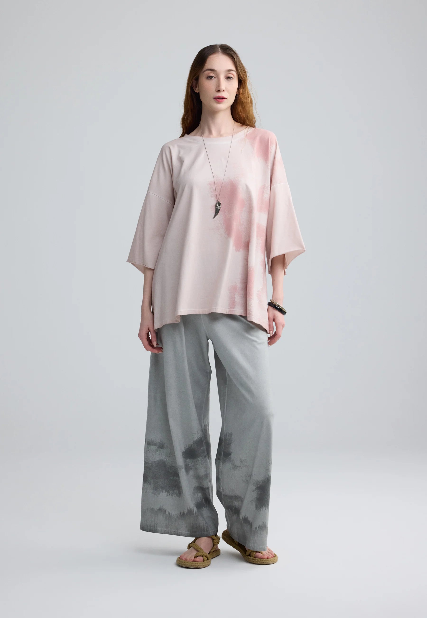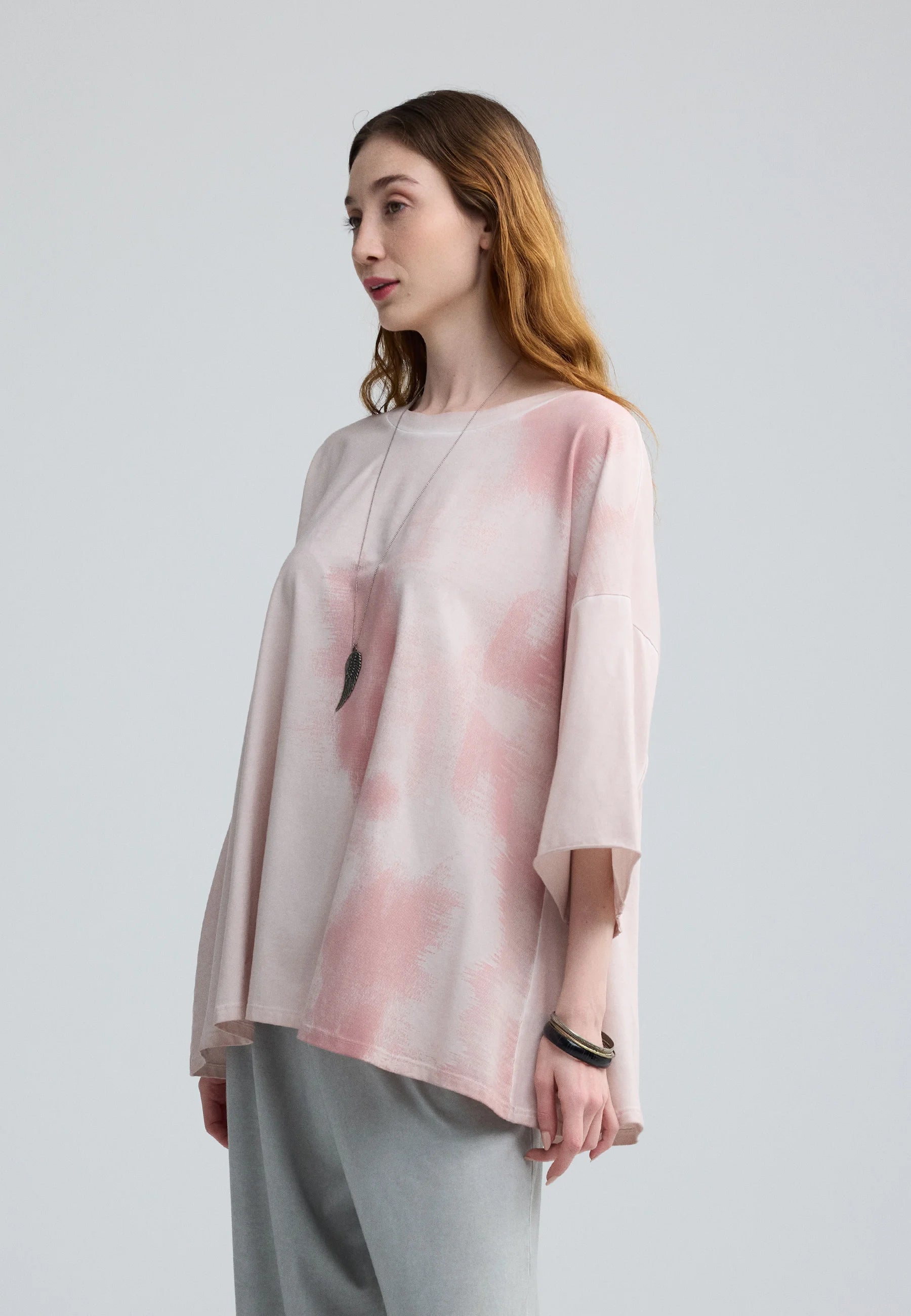 Its boxy T-shape also makes it an ideal companion for structured trousers or as a modern layer over longer tunics.