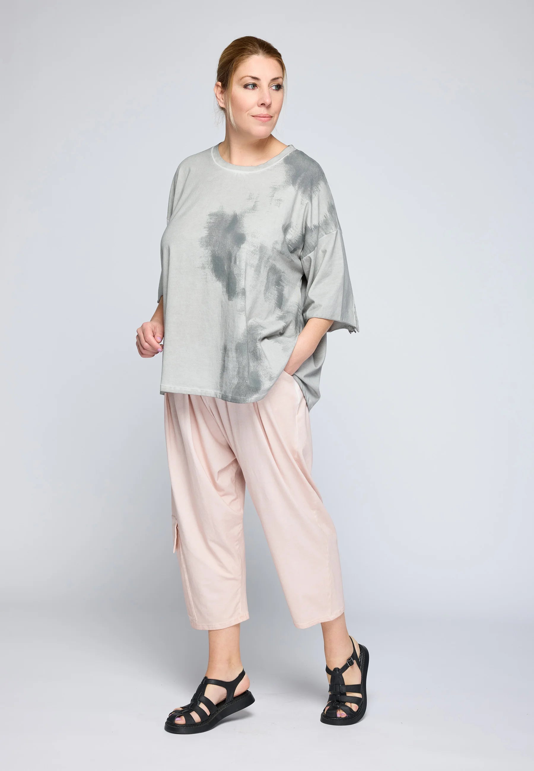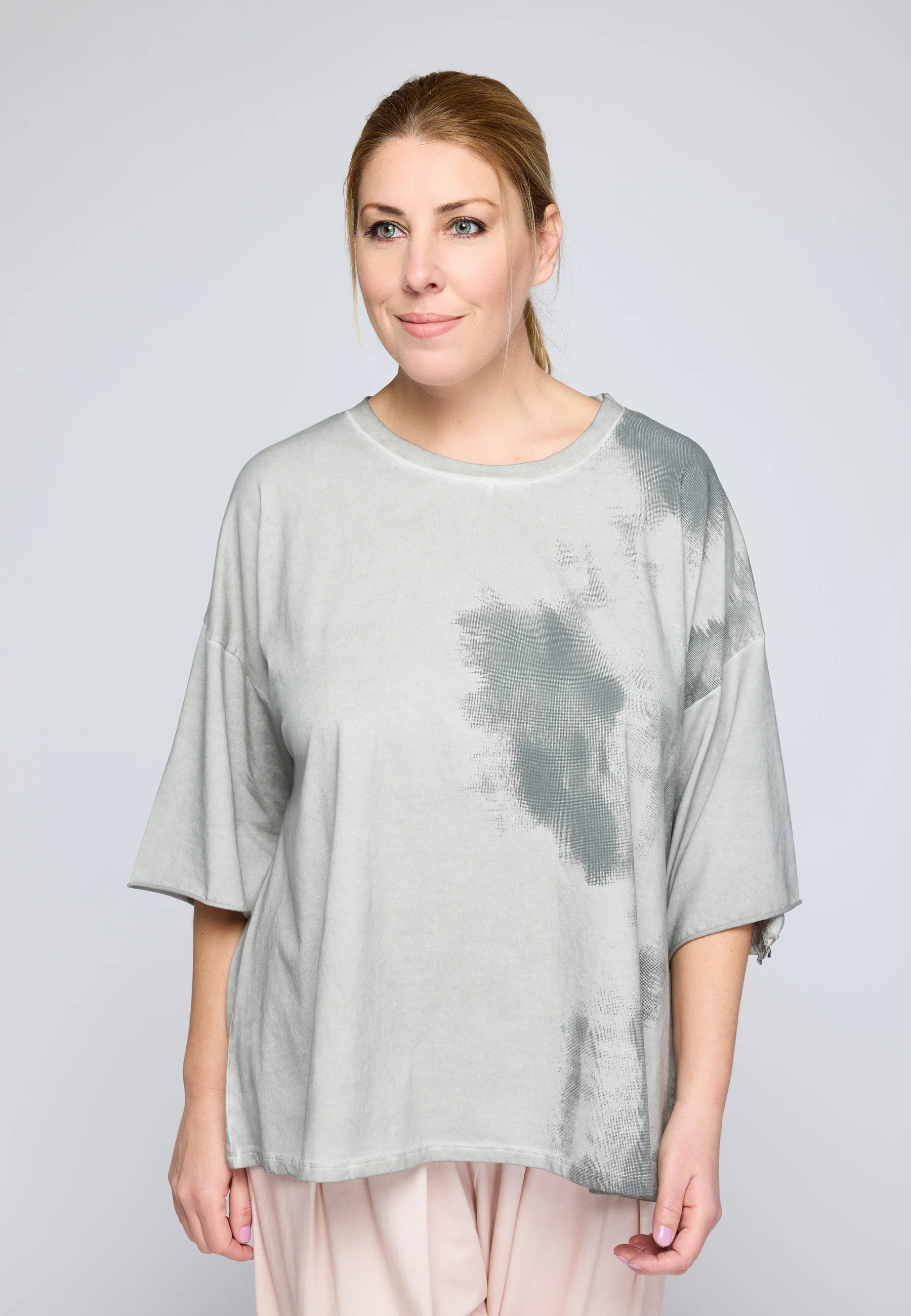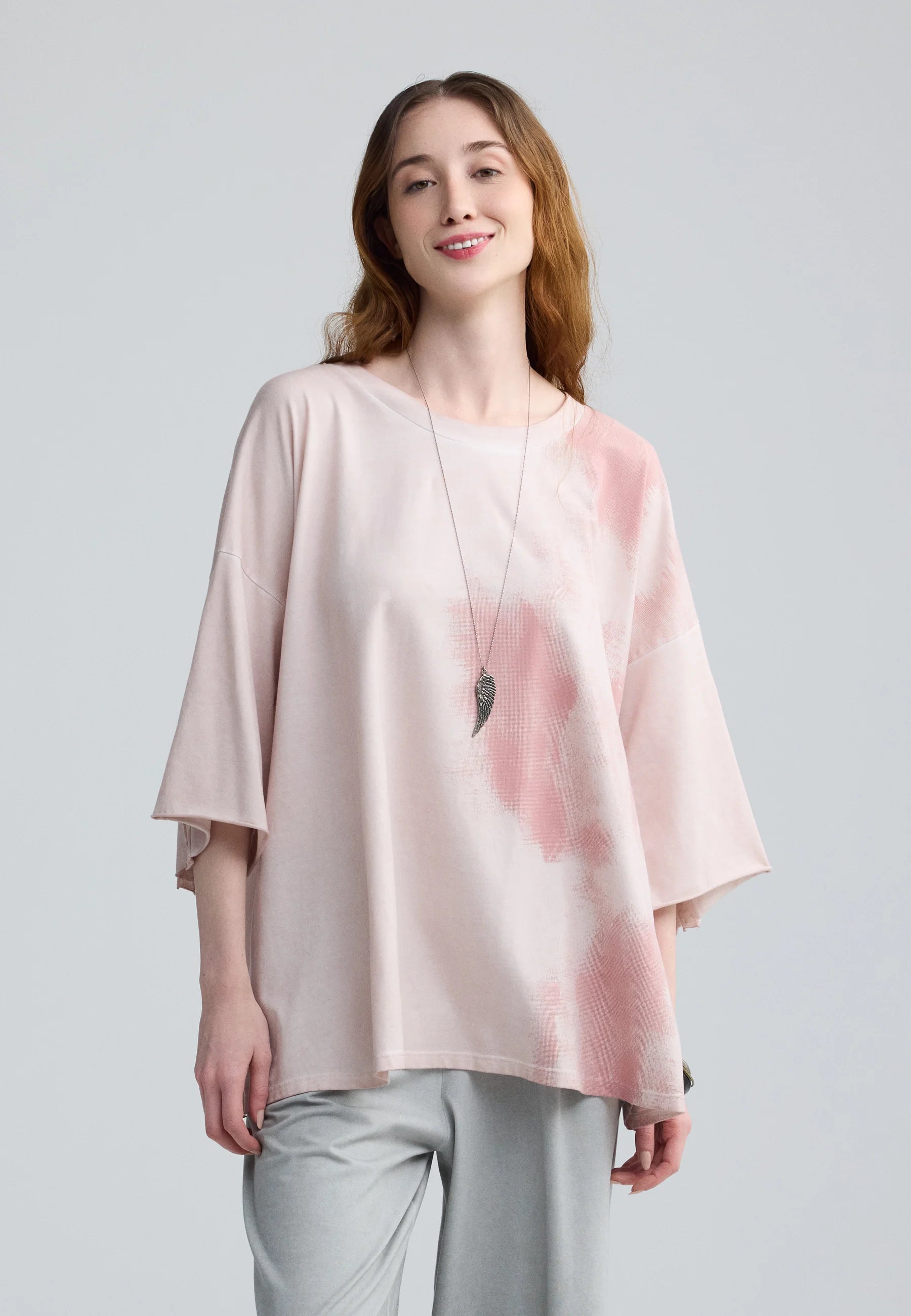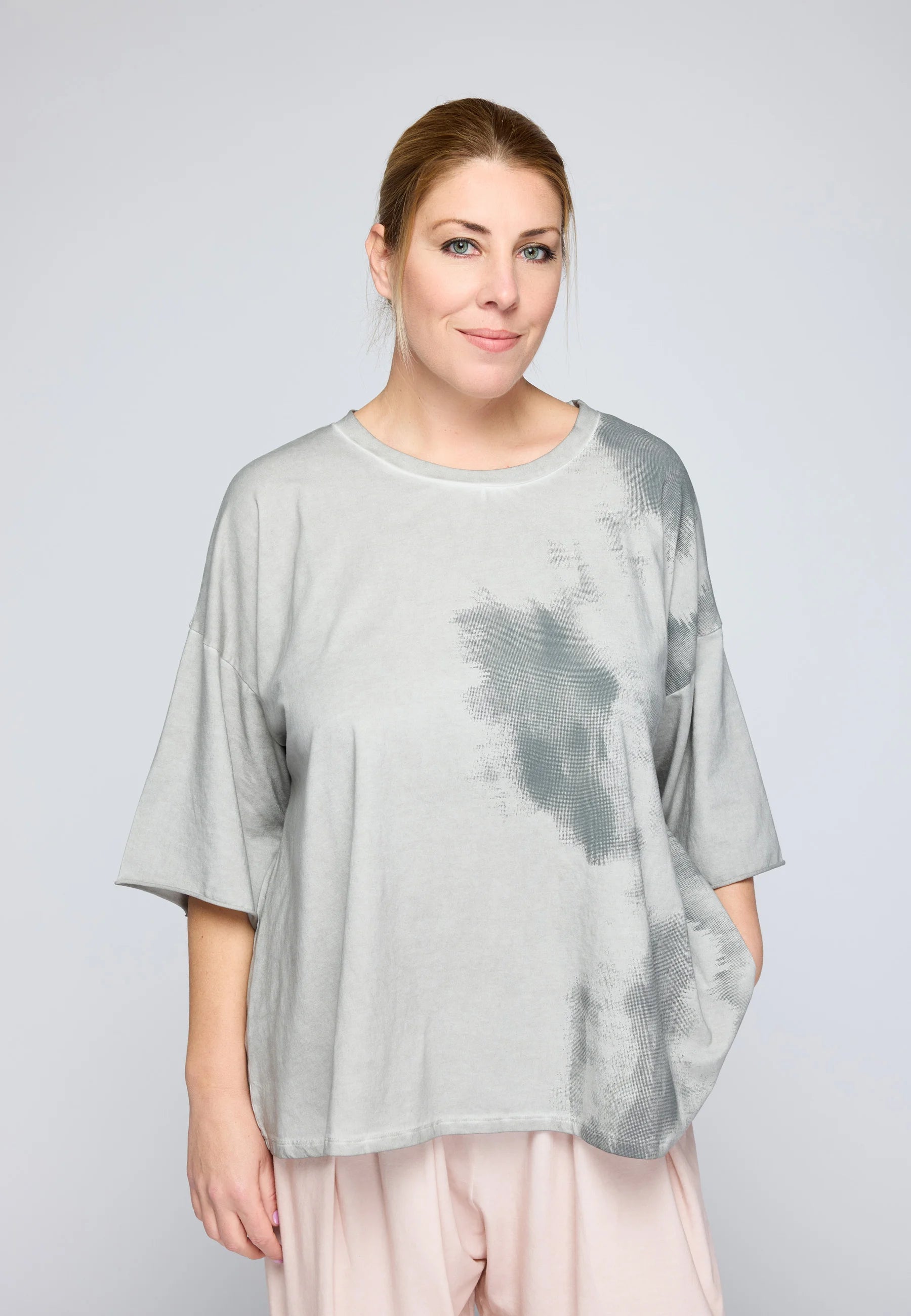 Its boxy T-shape also makes it an ideal companion for structured trousers or as a modern layer over longer tunics.