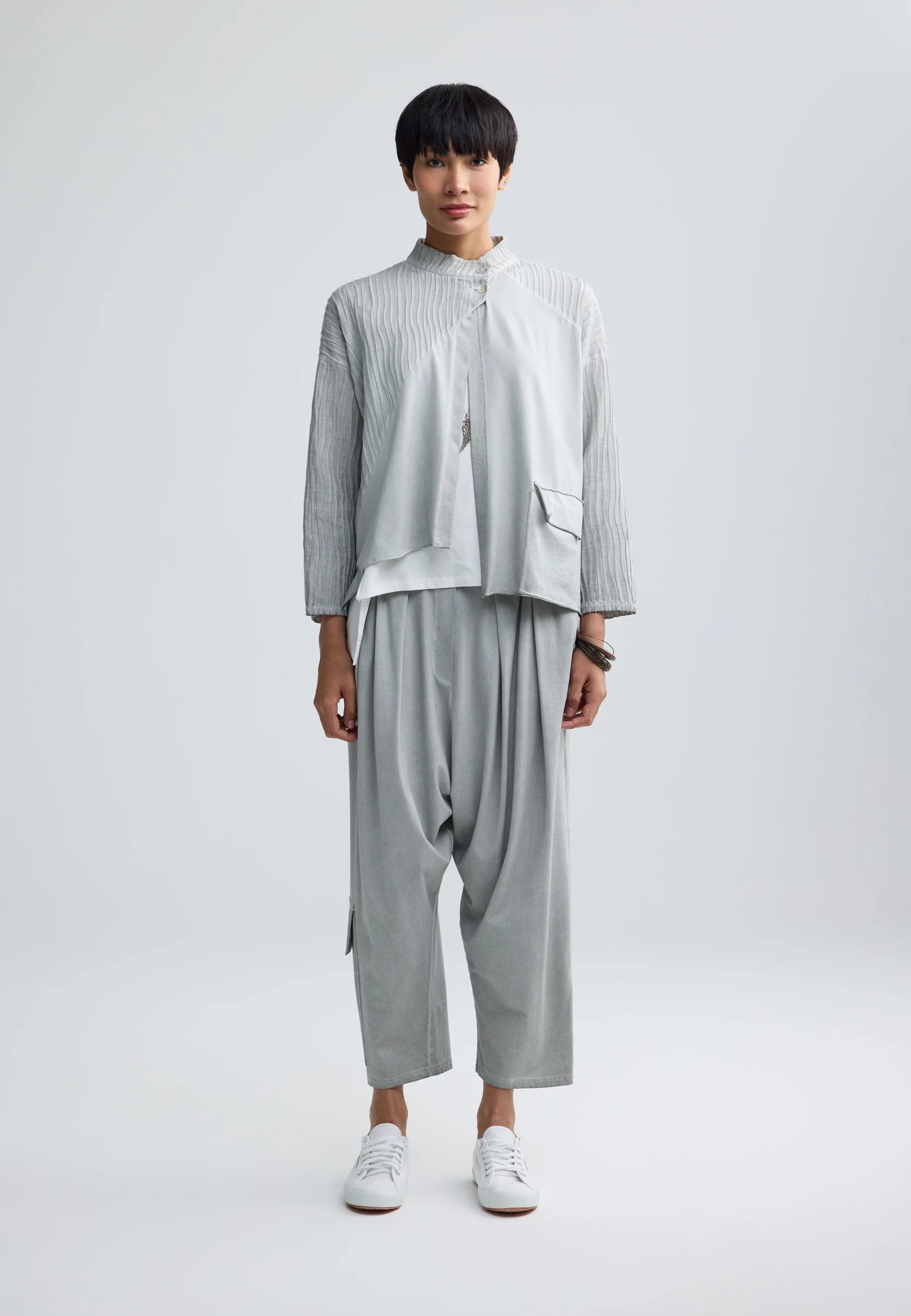 Its wide T-shape and minimal neckline fastening make it perfect for layering over the collection's more relaxed silhouettes, such as the LIORE Pants, to create a structured yet comfortable monochrome set.