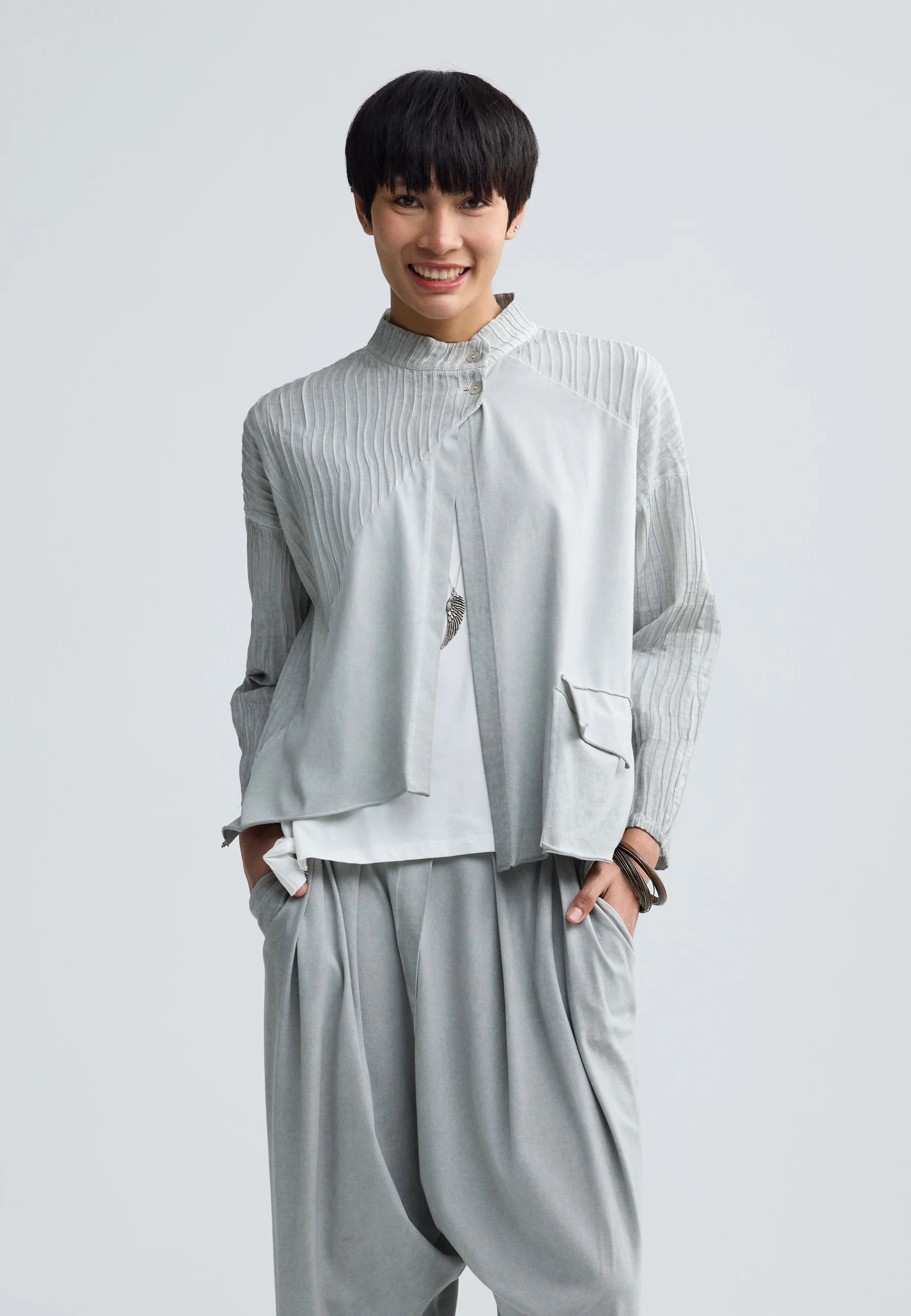 ✓ Unique Detail: Designed with a minimalist closure featuring functional buttons only at the neckline, transitioning into a clean, open-front body.