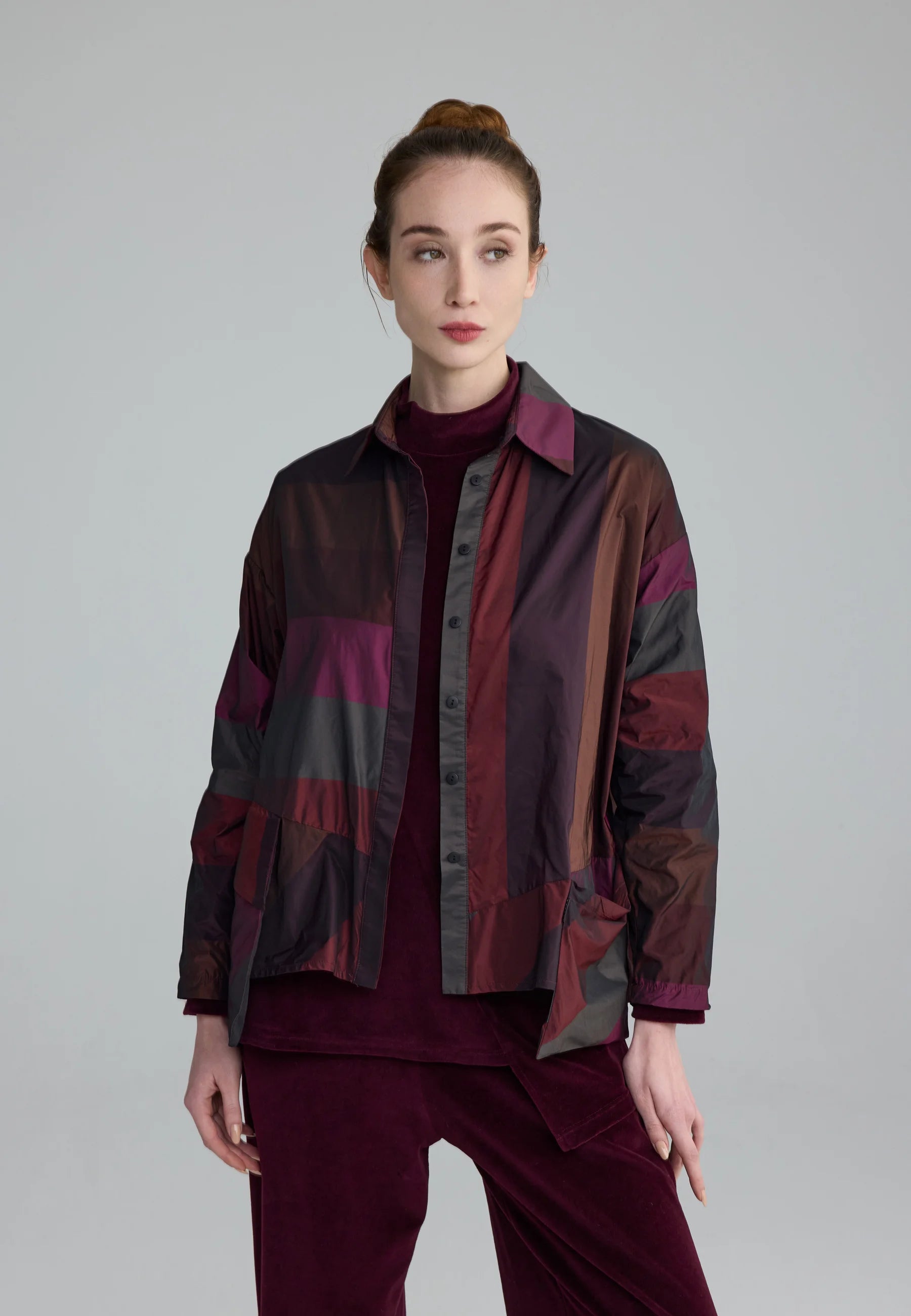 ✓ A modern and sophisticated shirt crafted from crisp memory taffeta.