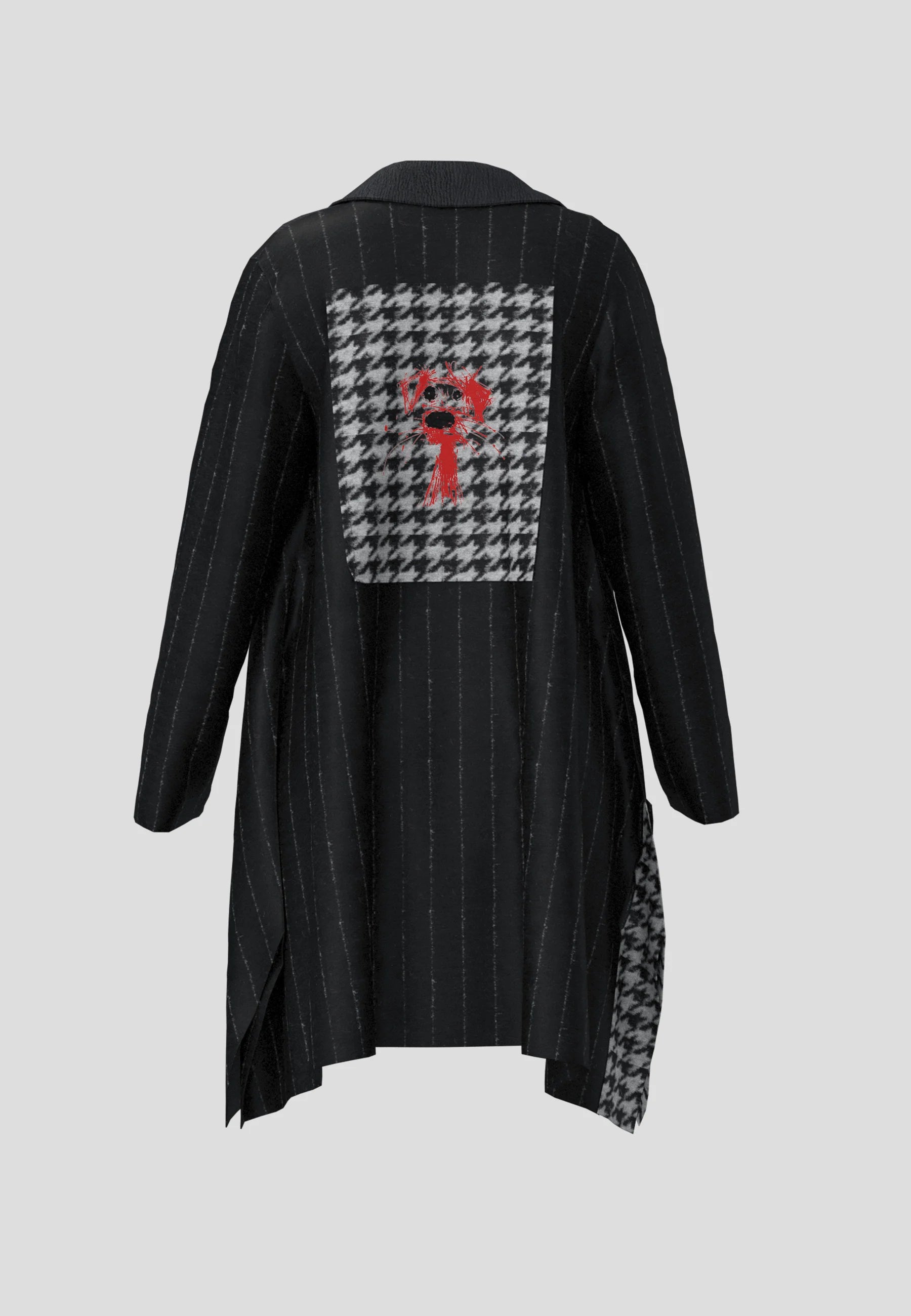The SUNNIVA Mixed-media long jacket is a powerful piece that makes a statement on its own.