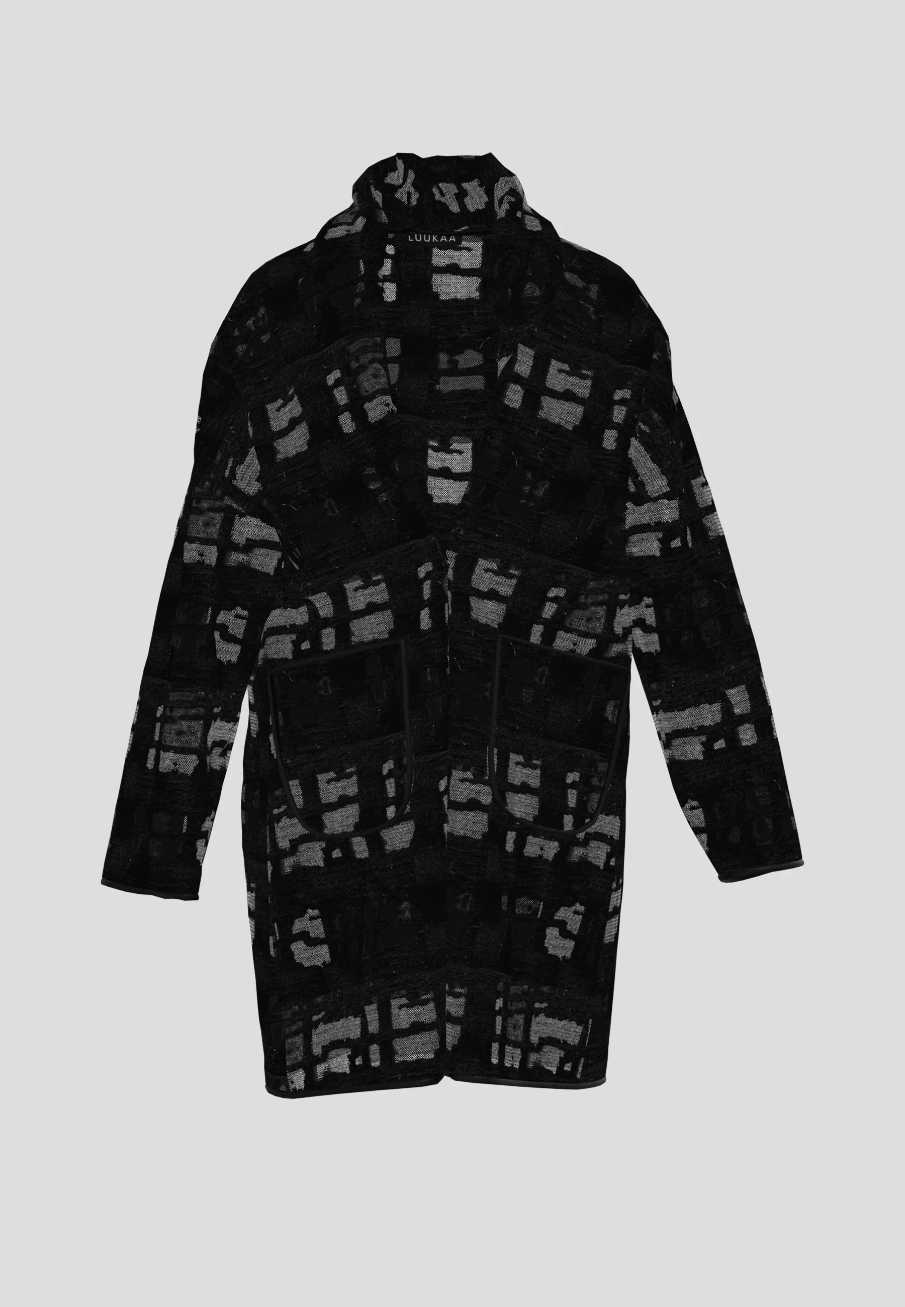 ✓ Made from a unique structured mesh with felt overlays, the jacket offers a rich, textural feel and a bold shape. The ends are finished with memory taffeta bands for a touch of refined detail.
