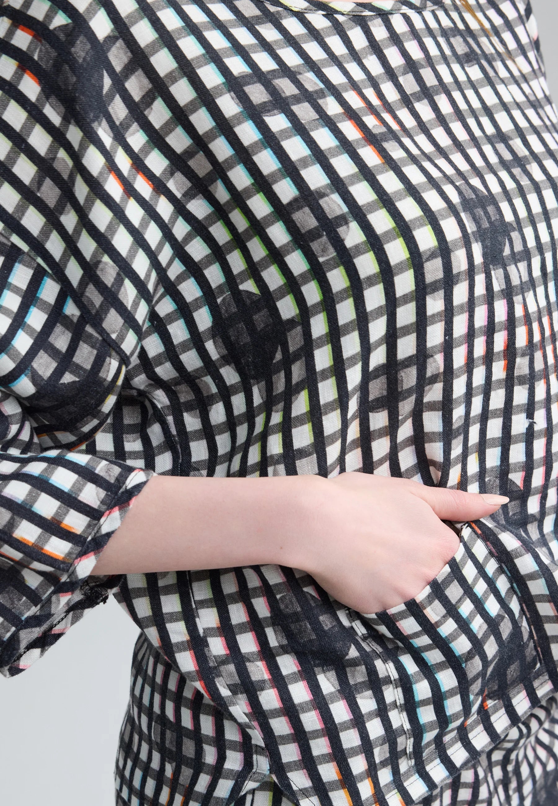 Its shorter length and boxy silhouette also make it the ideal partner for the EVANIA Skirt, effectively balancing volume and defining the waist.