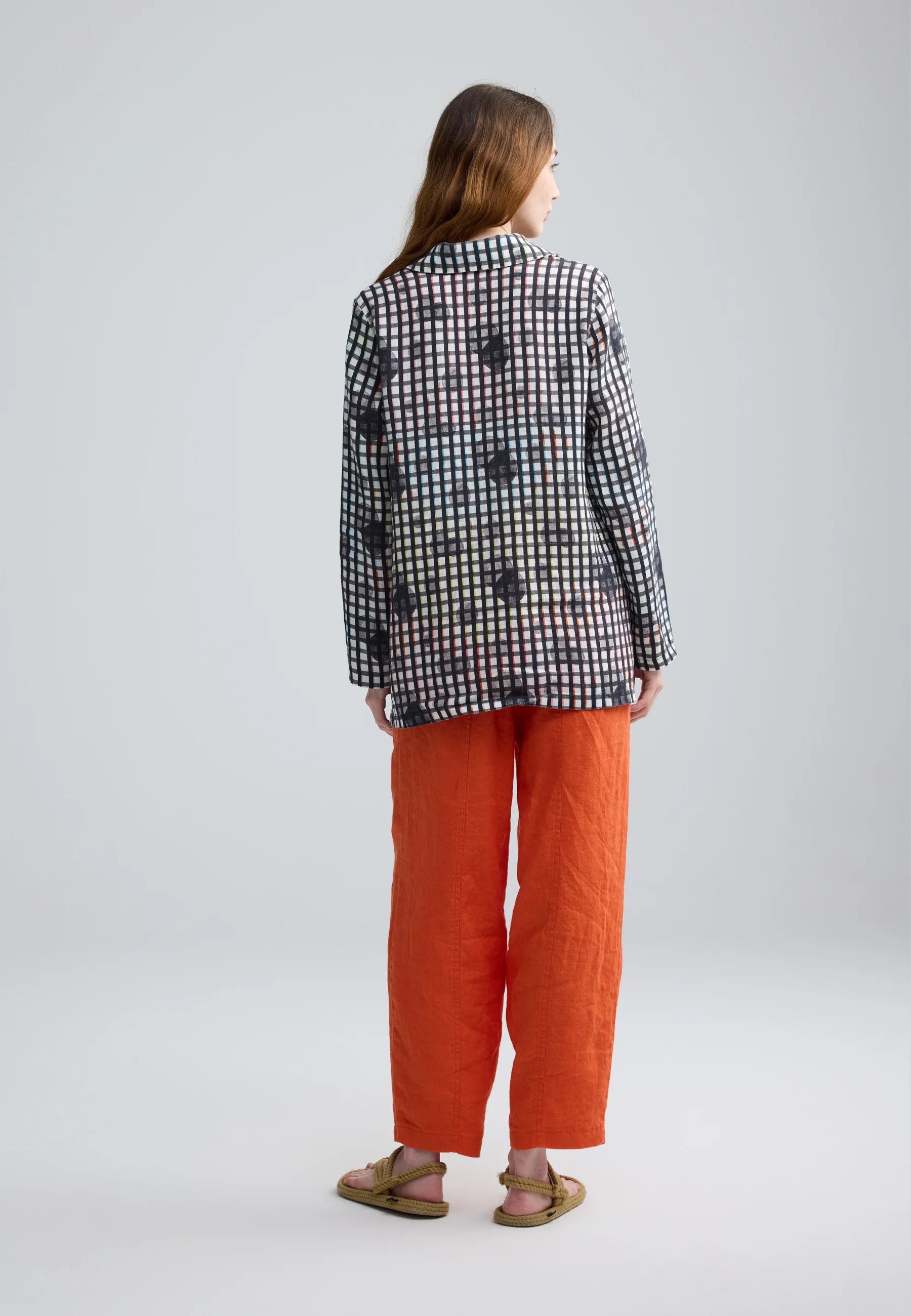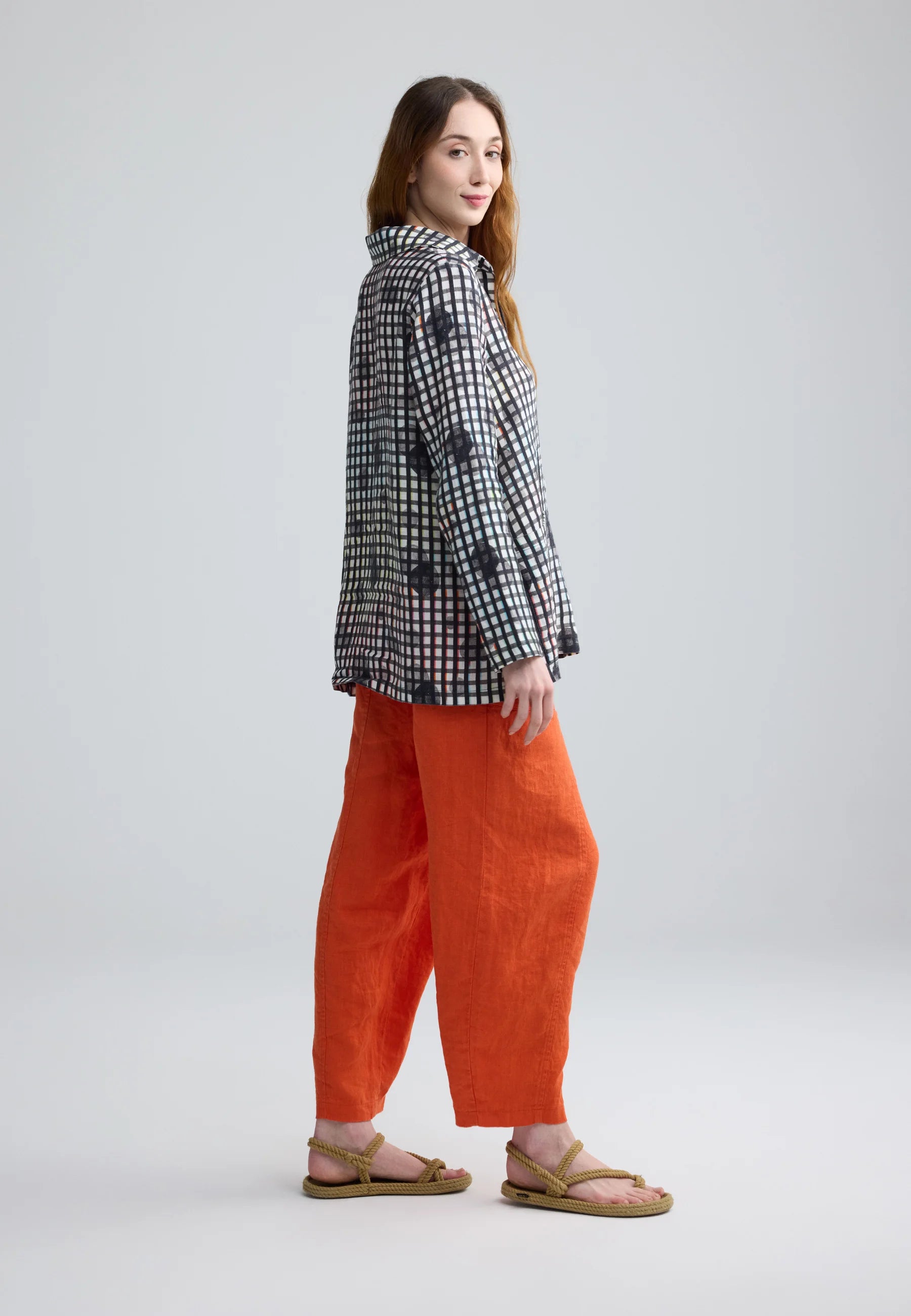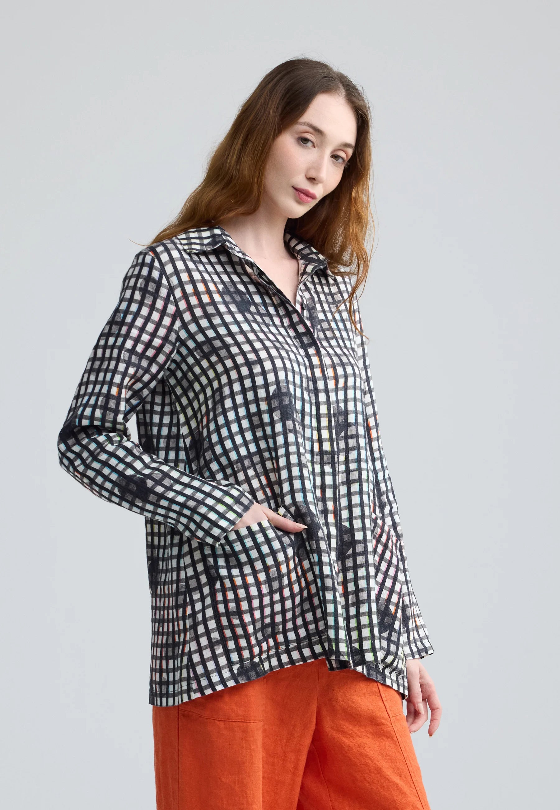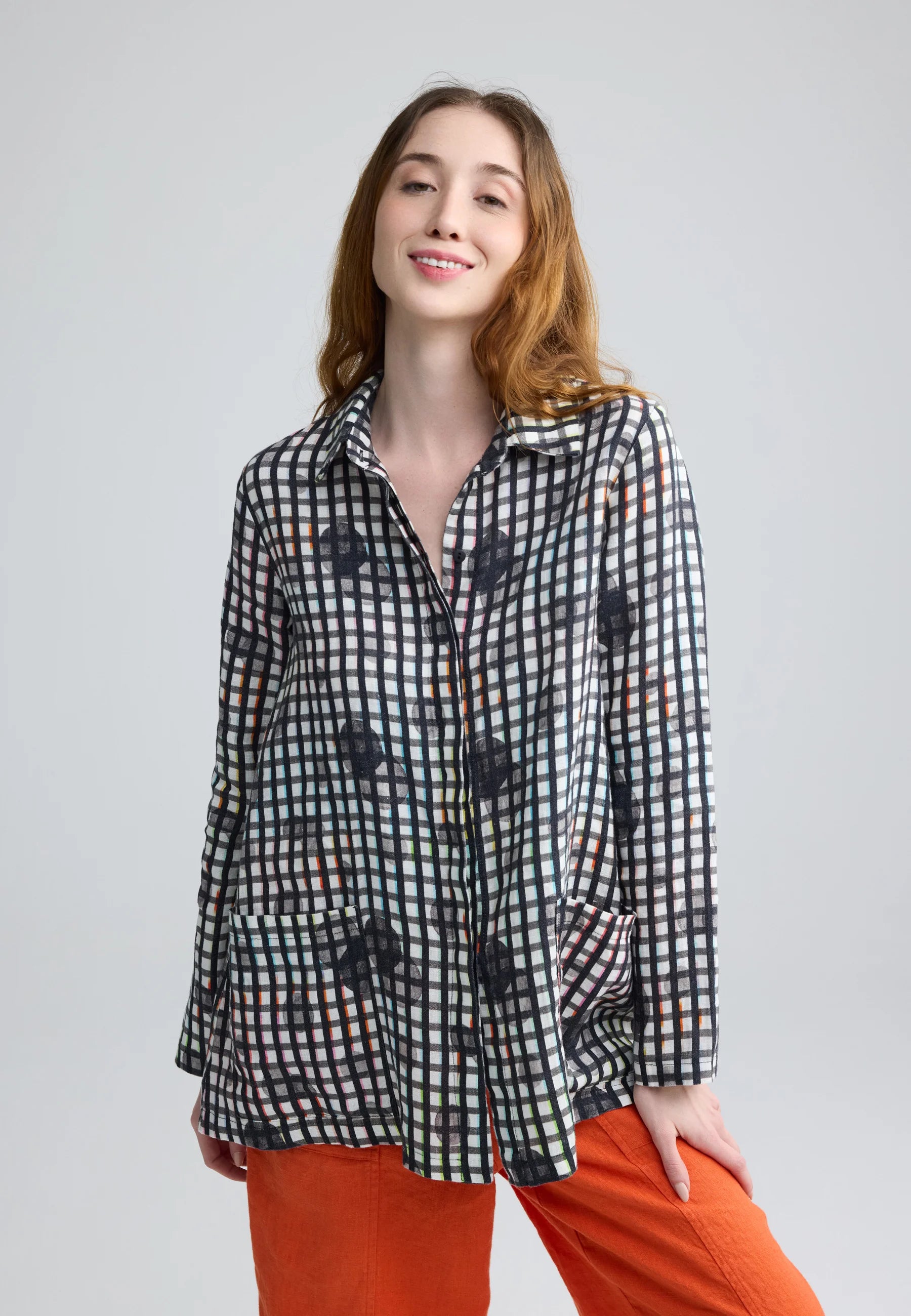 The BRILA Shirt is a masterclass in mixing bold graphic prints with natural textures.