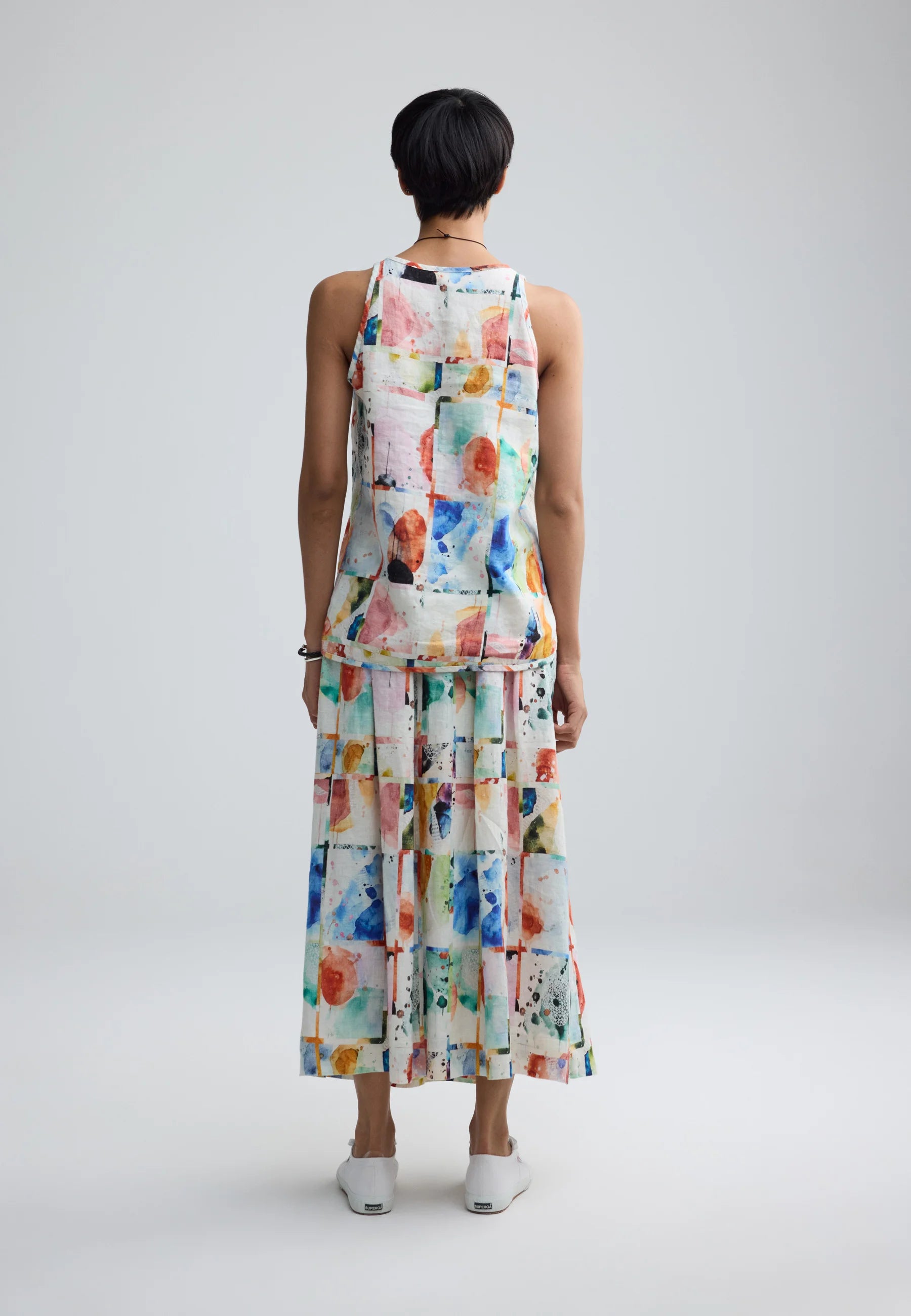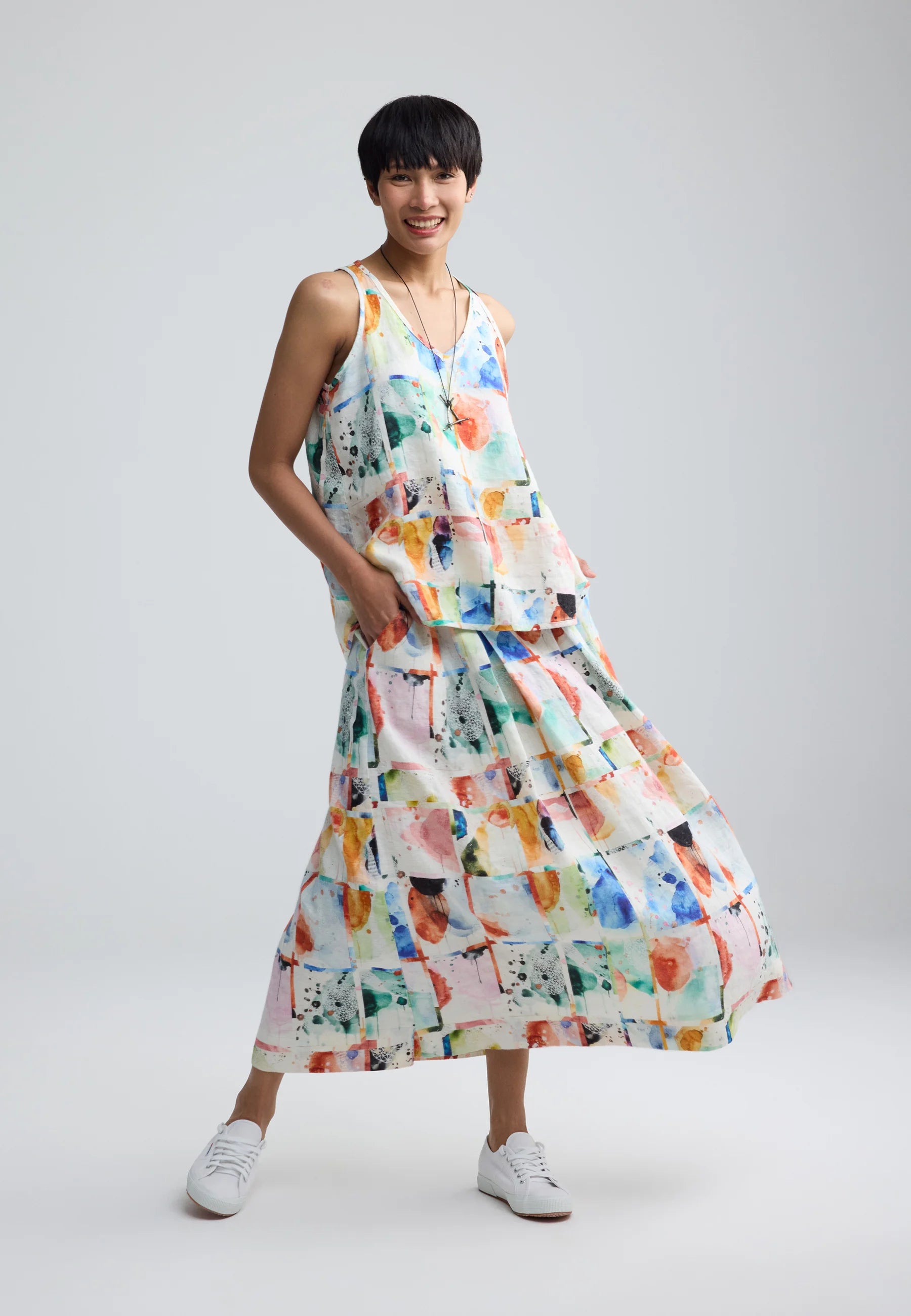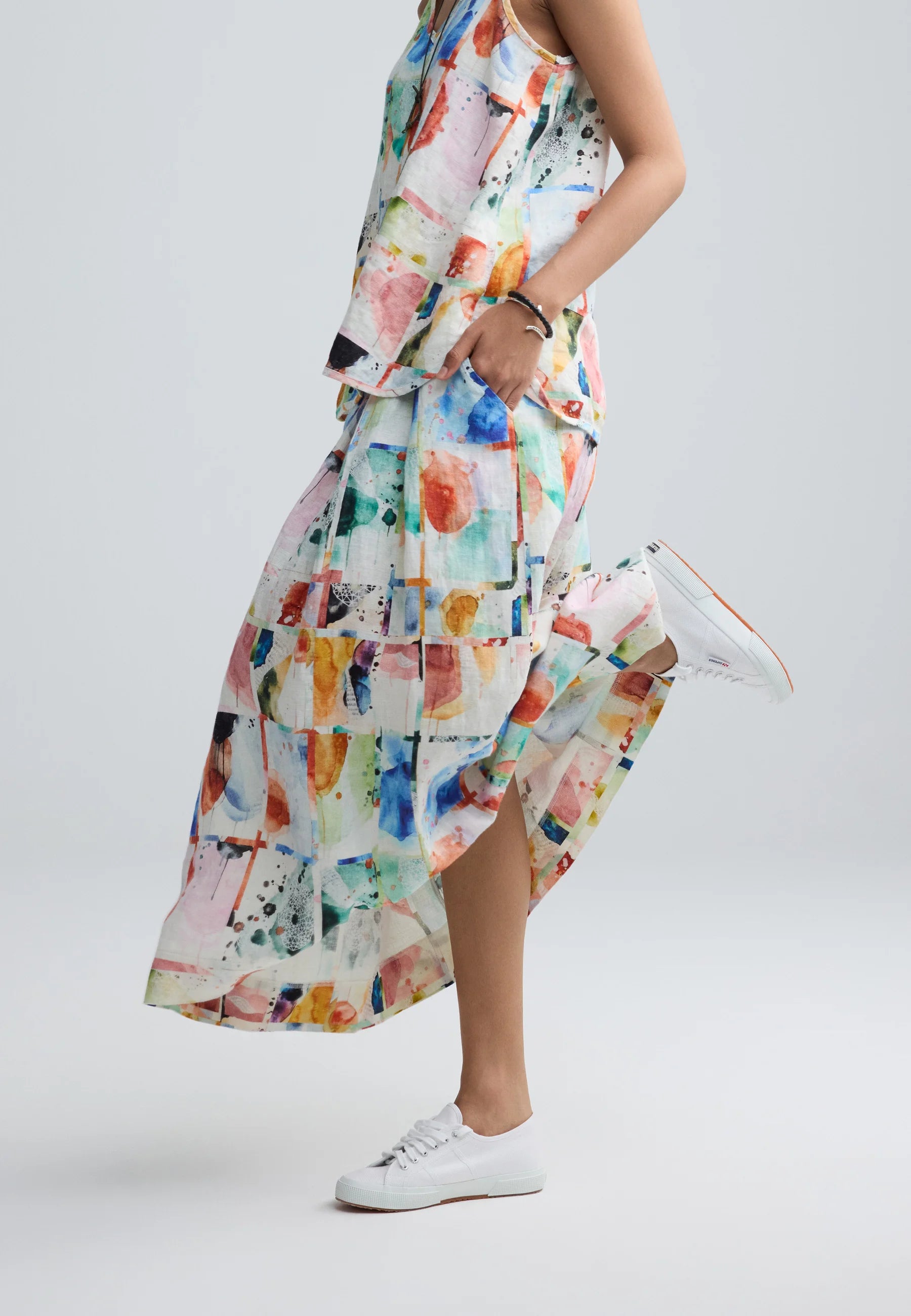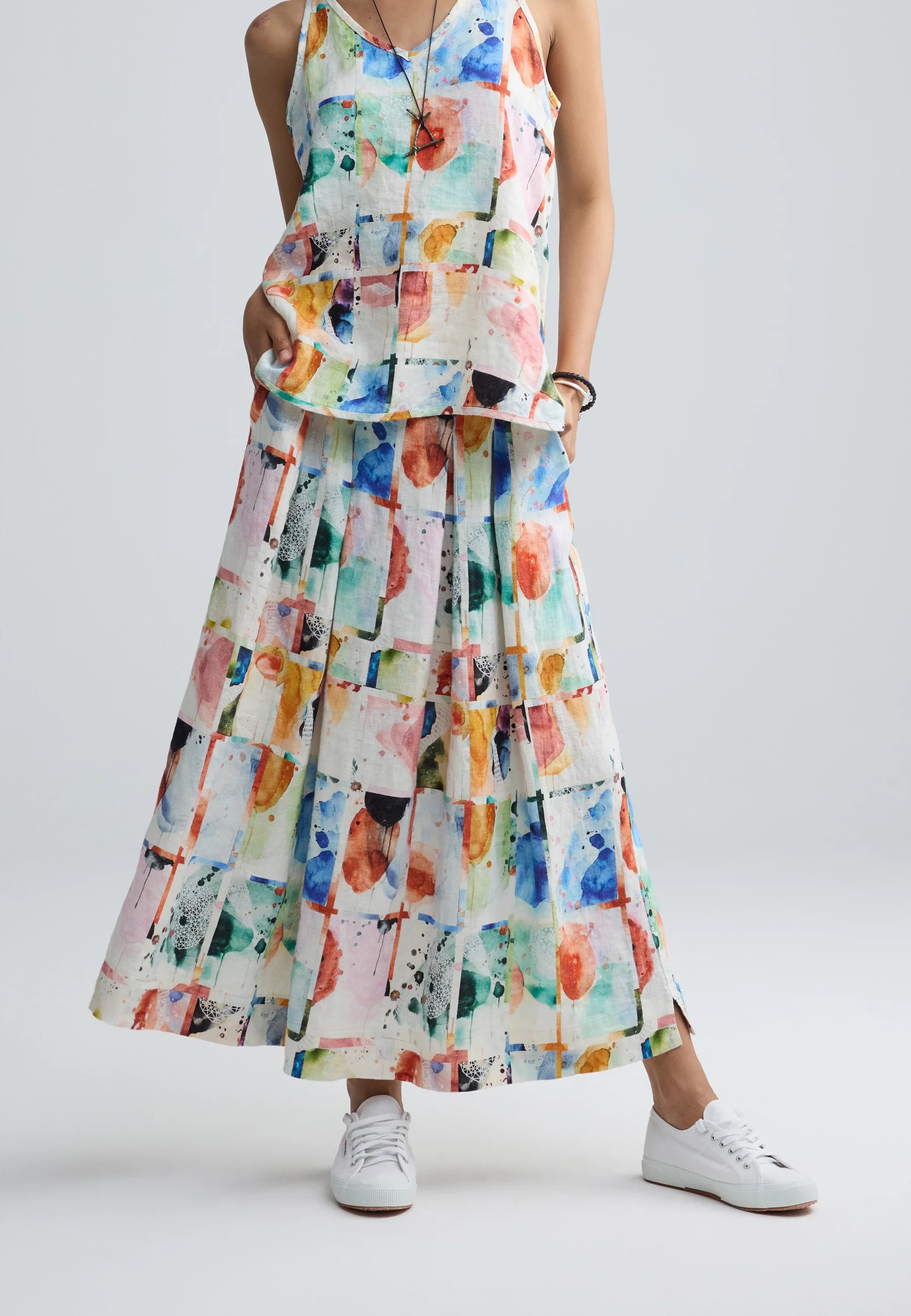 MERINA Painterly print linen maxi skirt