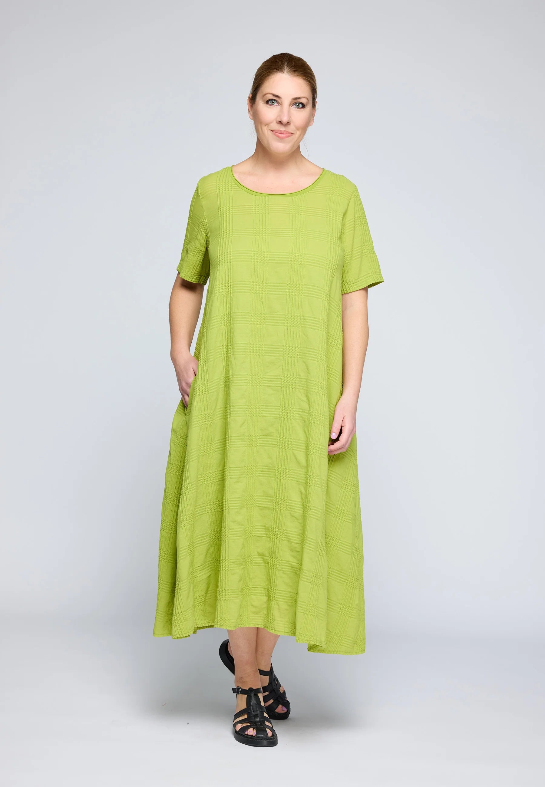 The CALLA Check-Embroidered Dress is a pure expression of effortless elegance, serving as the perfect canvas for seasonal layering.